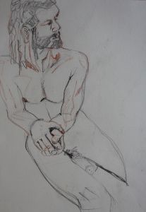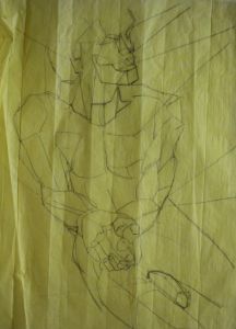 I started with a series of life drawings of my favourite model, Vangelis, who pops into HK at various times in the year. He does balletic movements which are a great inspiration for gestural drawing, but these were still poses. How could I make these more abstract? I started by tracing, simplifying the drawings into fewer lines, accentuating the sculptural shapes, making the body into blocks.