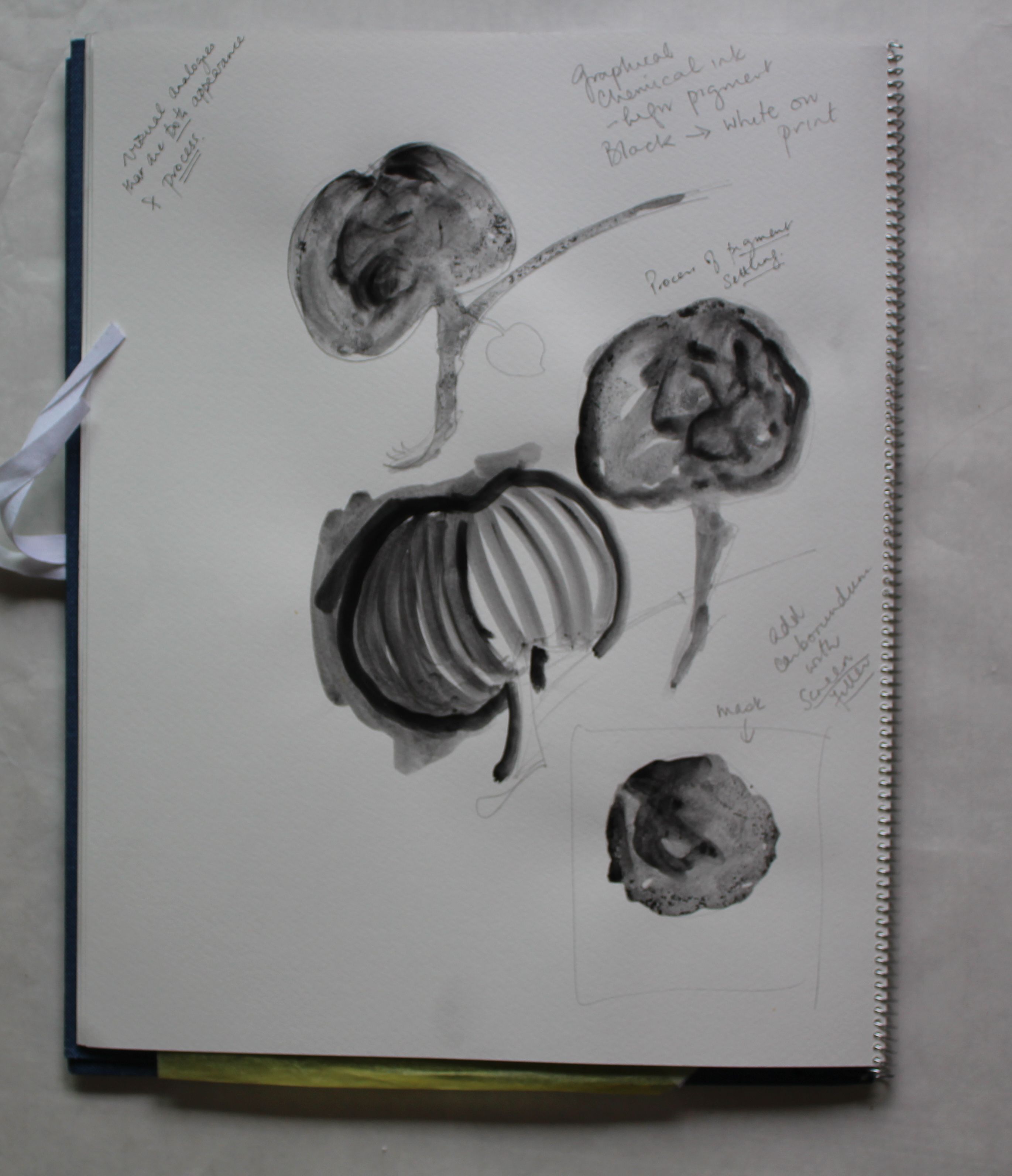 I now had two plates, a negative and a positive apple shape. I started with the negative. I was very keen to try a “tonal wash” which I had a recipe for from Capileira- it involved using a mixture of Graphic Chemical black ink with high level of pigment, and demineralised water. The two could be moved around on the surface of the plate, and the pigment would be released and will dissolve, forming a surface with a variety of tones and grains, which would substitute for an aquatint layer. It was a technique that could be controlled, ink wiped off with brushes, and redone until it was good. This was the result. I like the swirling patterns: they make me think of the dawn of the universe.