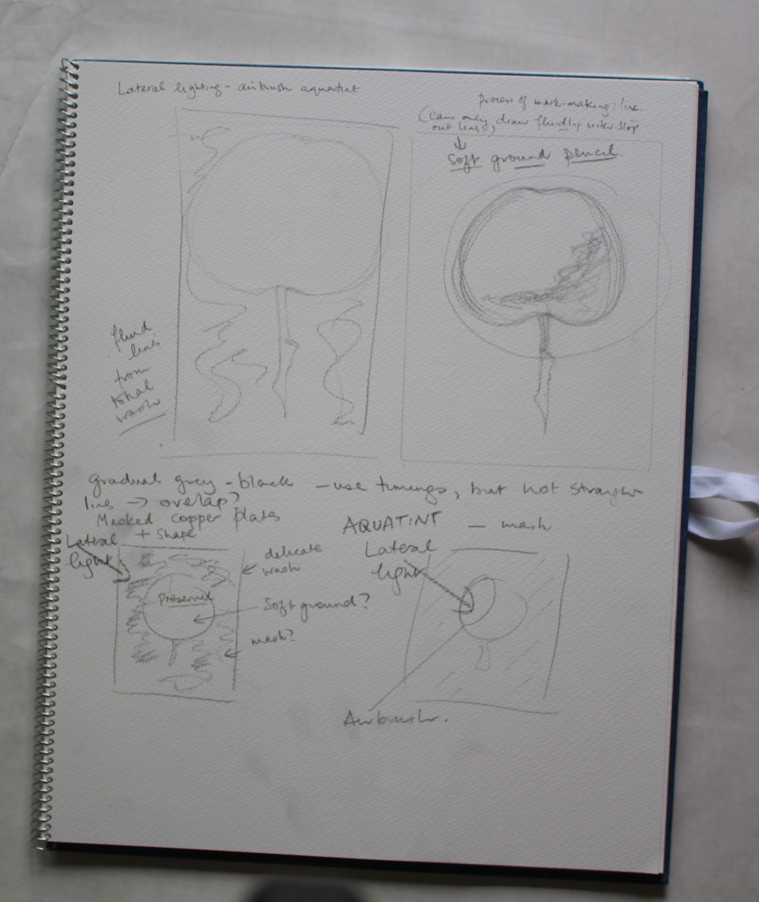 The monoprints and drypoint were ok, but it was time to use my new materials, and plan an image using multiple techniques of engraving. I sketched my ideas, and wrote a list to follow, as it’s hardly intuitive yet.