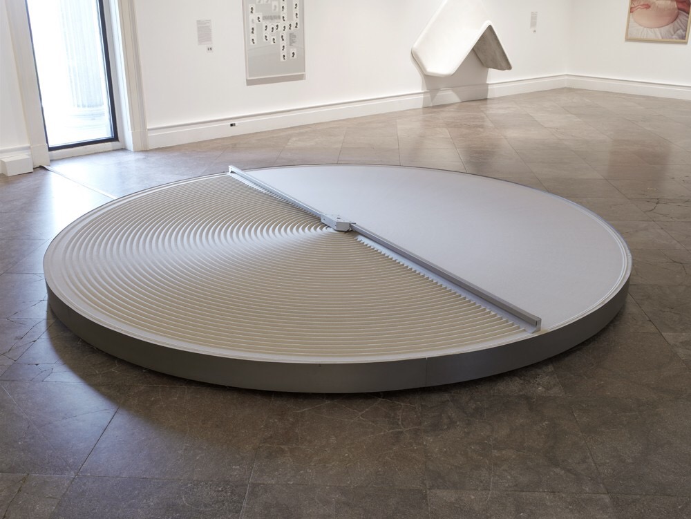 My favourite piece of all though was + and -, a large circle of sand with a mechanical rotating arm, one side of which raked the sand, the other smoothed it. It was a paradox in motion, marking and erasing, doing and undoing, a continuous cycle, and hypnotic in its effect.