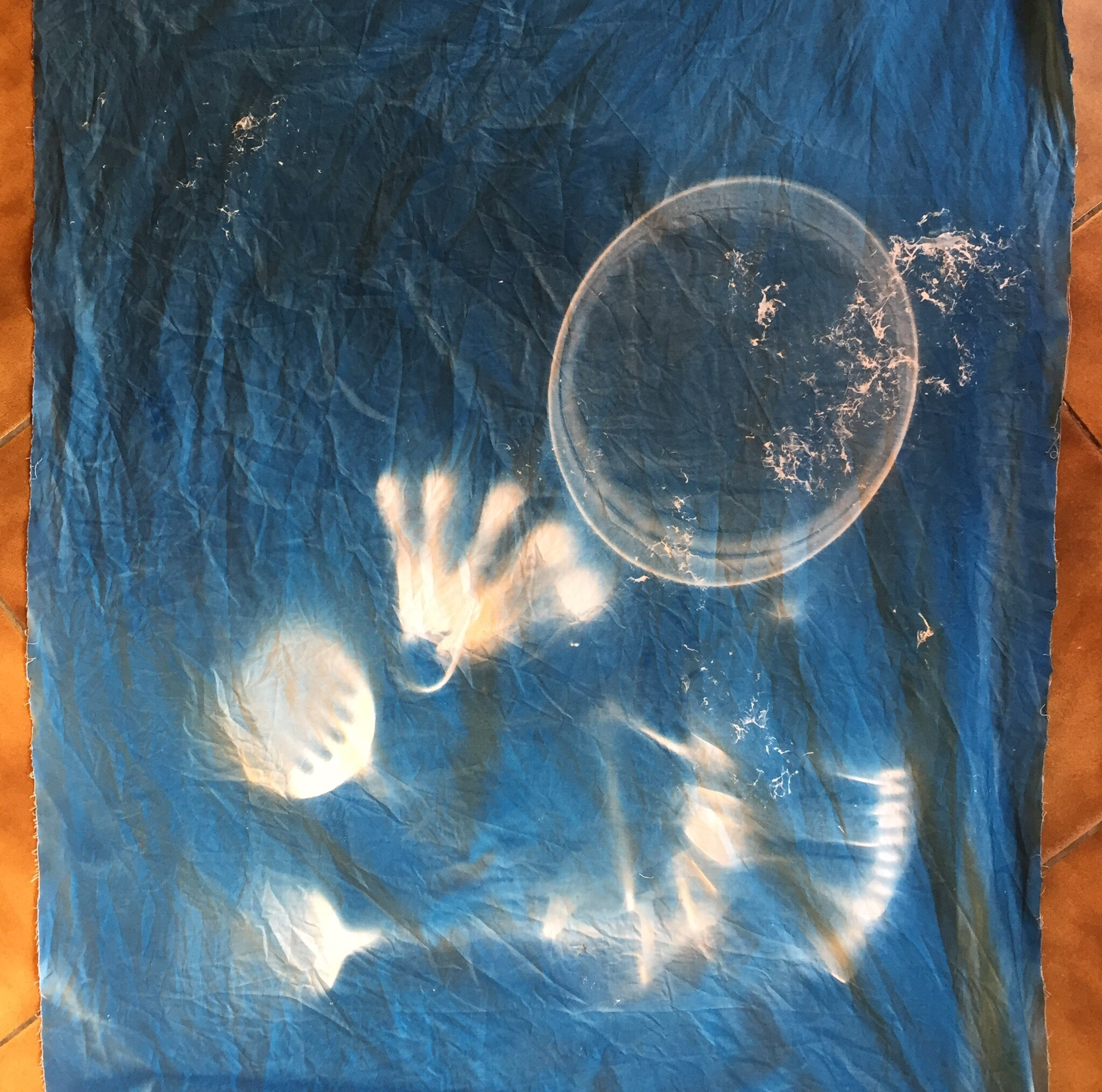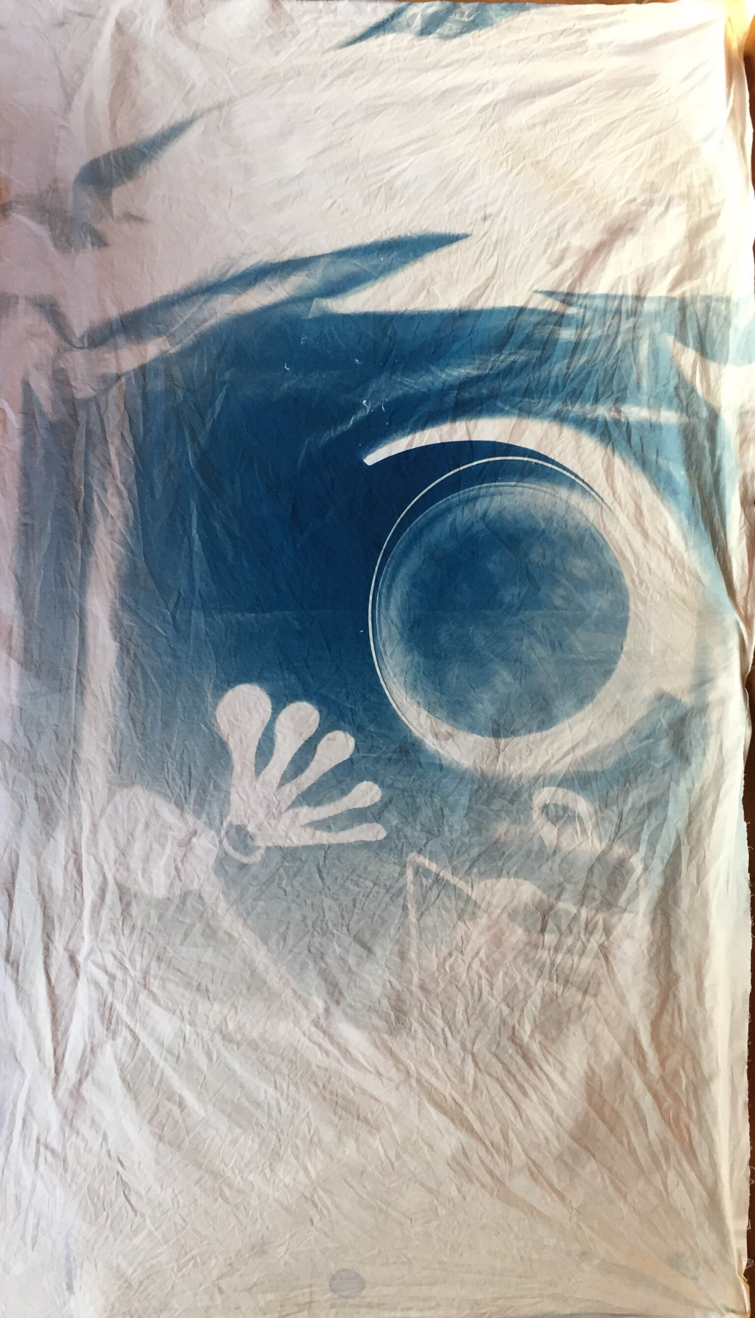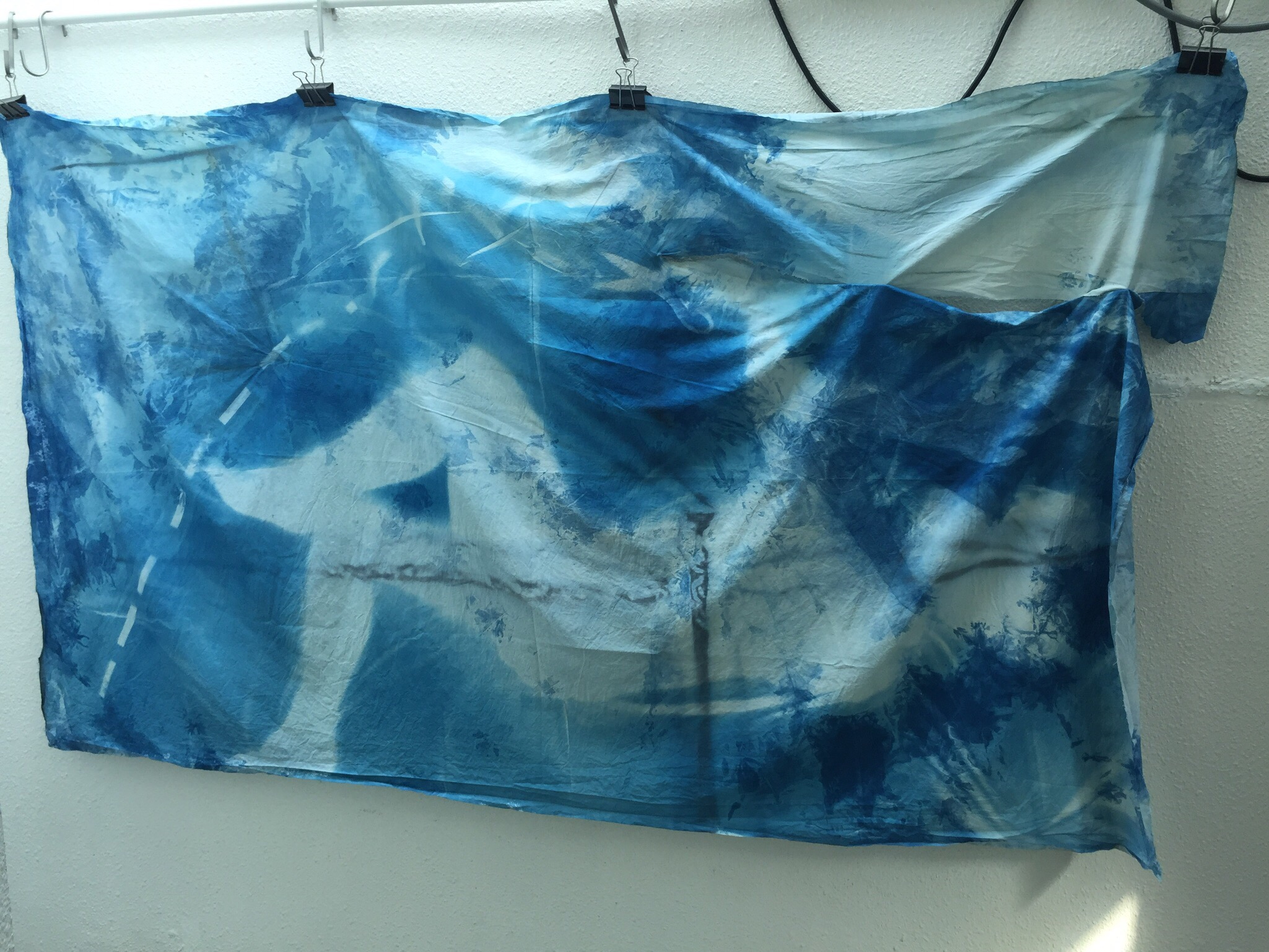 For this project, I returned to cyanotype printing, using direct images, or photocopying onto the light sensitive cloth.